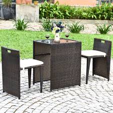 JUEGO DE MUEBLES BEIGE PARA EXTERIORES CON MESA Y DOS AUXILIARES