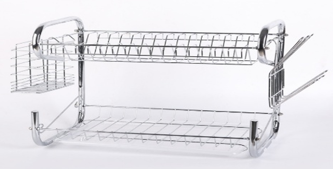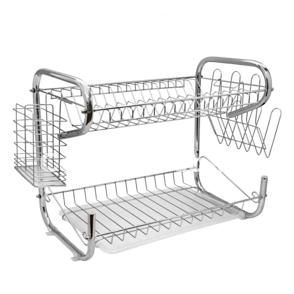 escurridor o secaplatos de dos niveles, un utensilio de cocina diseñado para secar la vajilla de forma higiénica y organizada después de lavarla.
