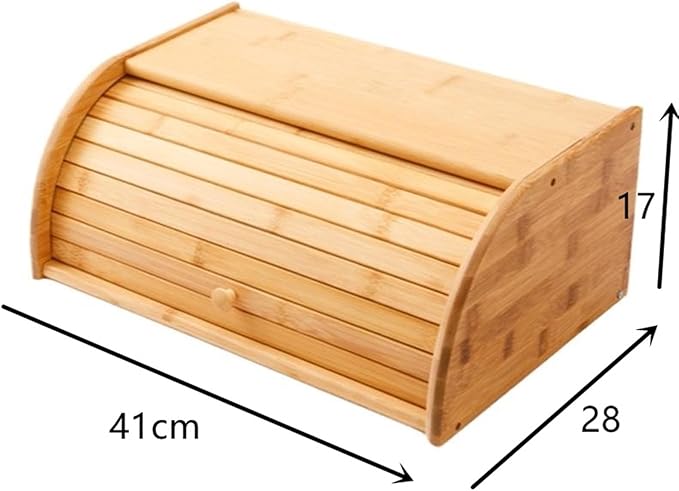 Esta hermosa panera es un material de bambú, con tapa deslizante para más comodidad y seguridad