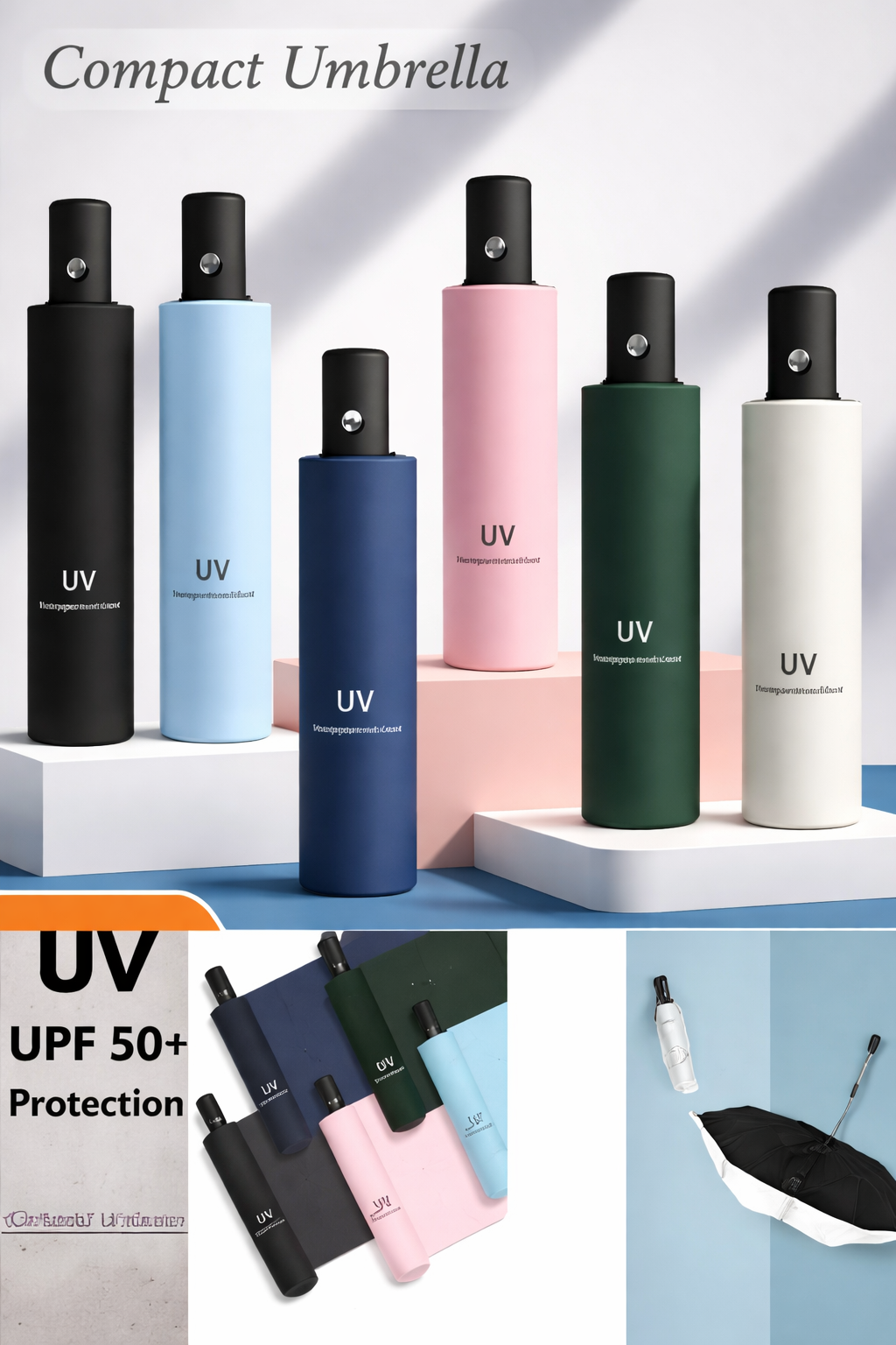 Este moderno paraguas compacto destaca por su diseño elegante y minimalista, disponible en varios colores sofisticados como negro, azul, rosa, verde y blanco, ideal para cualquier estilo. Su estructura portátil tipo cilindro lo hace fácil de llevar en bolsos o mochilas, mientras que su tecnología de protección UV con nivel UPF 50+ brinda una excelente defensa contra los rayos solares. Además, combina funcionalidad y estética, siendo perfecto tanto para días lluviosos como soleados, convirtiéndose en un accesorio práctico, ligero y esencial para el uso diario.
