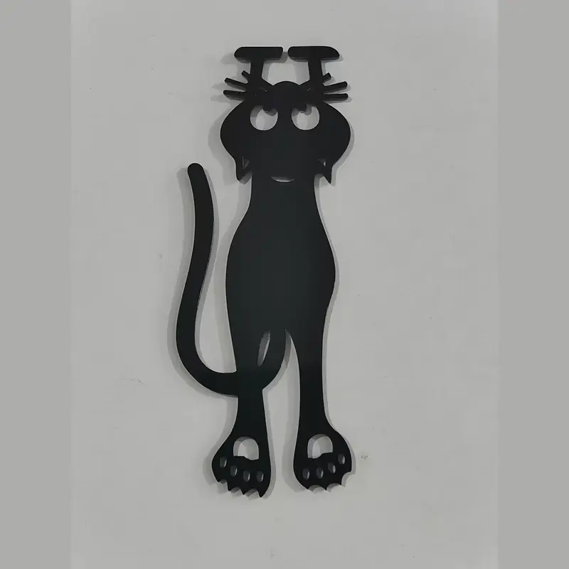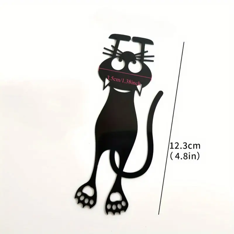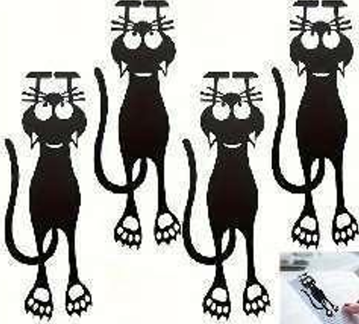 marcapáginas (también conocido como punto de libro o señalador) con un diseño de gato negro curioso)