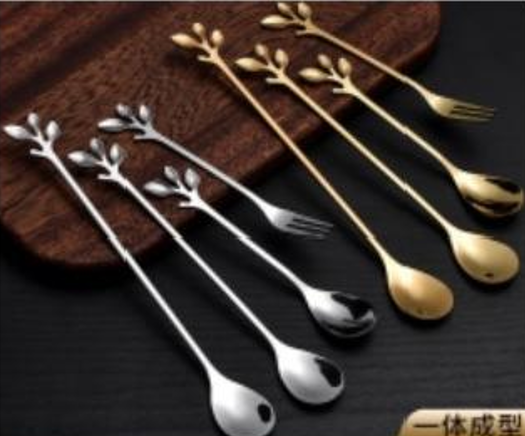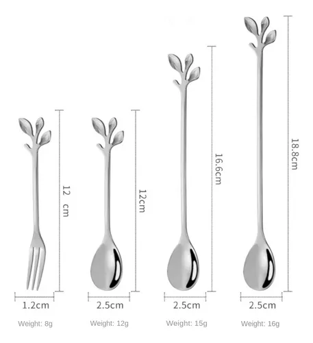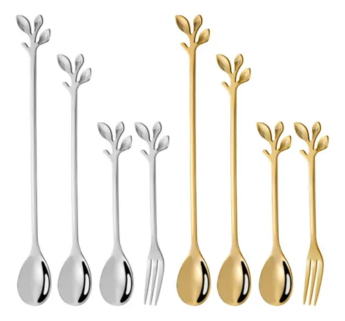 Set de 4 cubiertos en color plateado o dorado, ideal para servir postres o mezclar tu bebidas