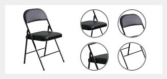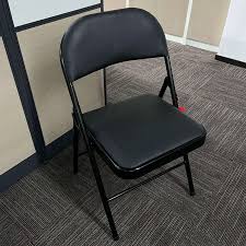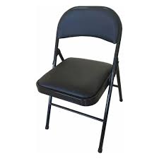 silla plegable de color negro, diseñada con una estructura metálica duradera y tapizada con cuero sintético acolchado para brindar comodidad.